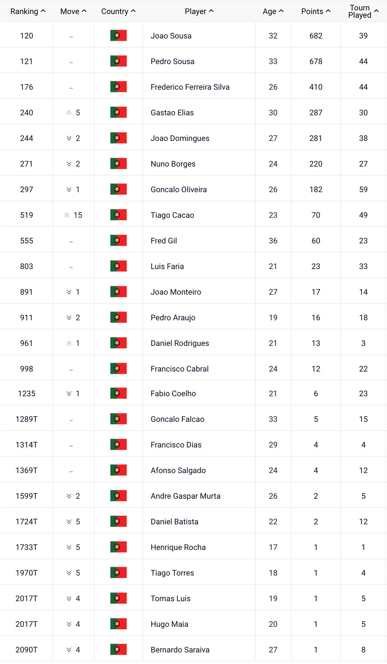 Gastão Elias sobe novamente e tornase no 4.º melhor português no , Afinal, apesar de a lista também.